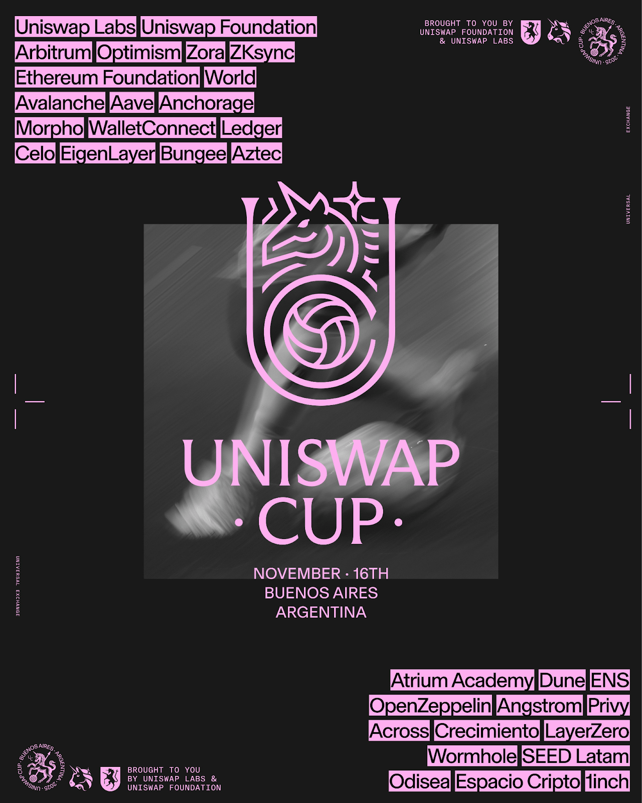 On November 16th in Buenos Aires, a day before Devconnect, fútbol meets crypto. The Uniswap Cup will bring together 32 10-man teams for a single day, winner takes all, football tournament featuring your favorite crypto protocols.