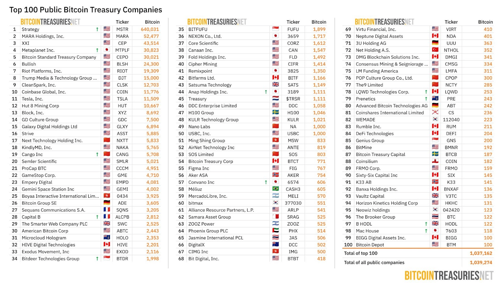 OranjeBTC now ranks as the largest BTC treasury in LatAm and rank #26 worldwide among publicly traded firms.